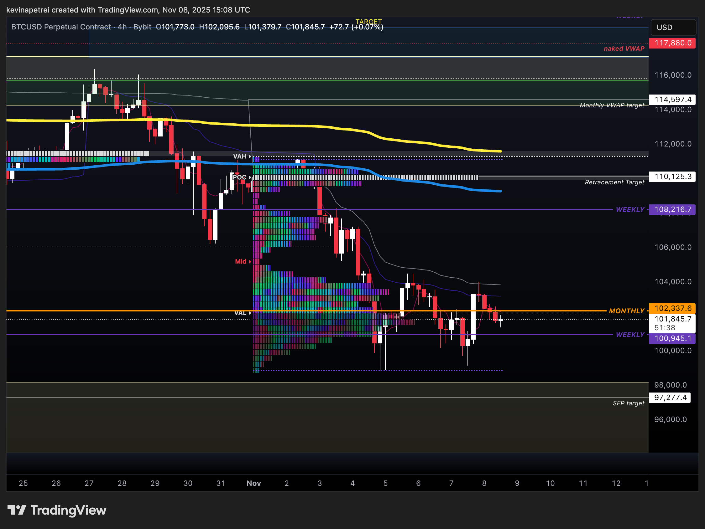 - The current market situation from a macro standpoint is bearish if we fail below 98K on the weekly.