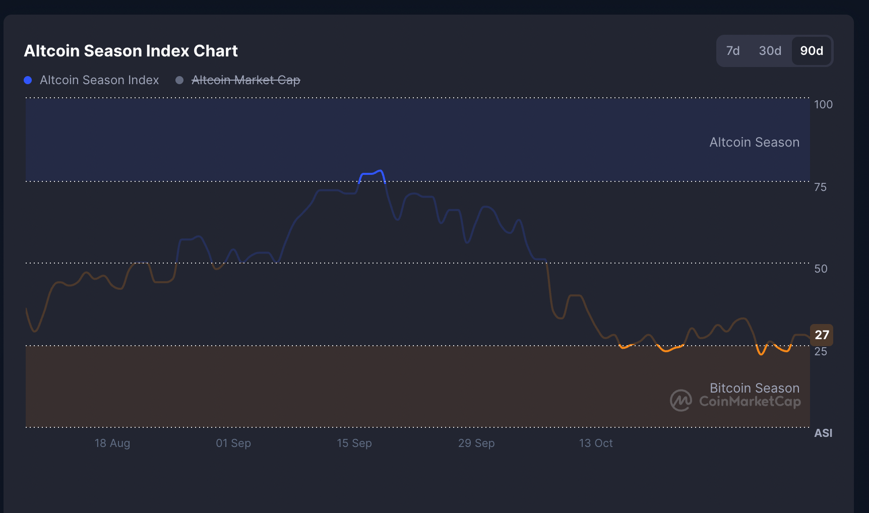 - Overall altcoin season index has reset, so we should start seeing this pick up a little during December.